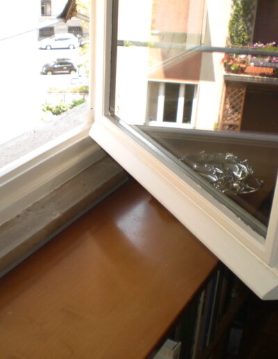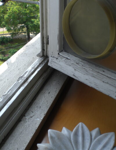 Intervento di restauro completo su serramenti in legno deteriorati. Abbiamo rimosso le parti danneggiate, ricostruito i profili con inserti in legno massello, stuccato e carteggiato per riportare la struttura alla forma originale. Infine, abbiamo applicato una nuova verniciatura coprente e montato il vetro camera per garantire isolamento termico e acustico, mantenendo il carattere originale della finestra.