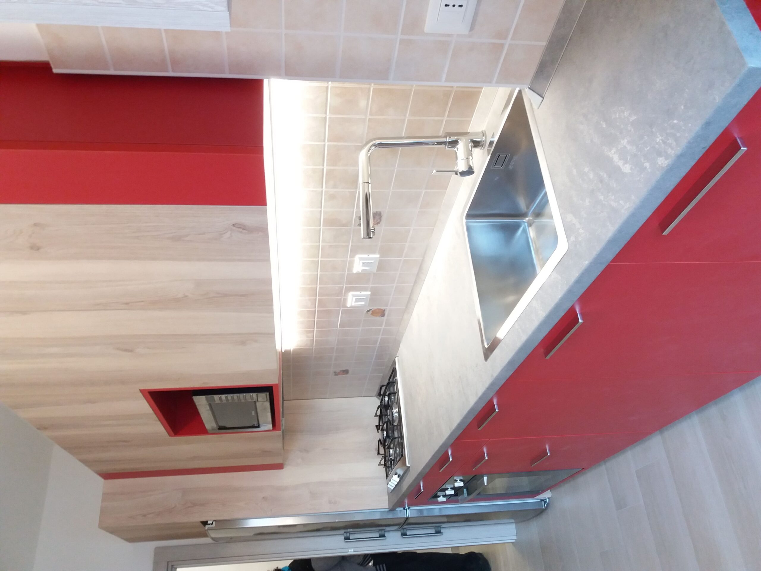 Cucina su misura in rosso e rovere