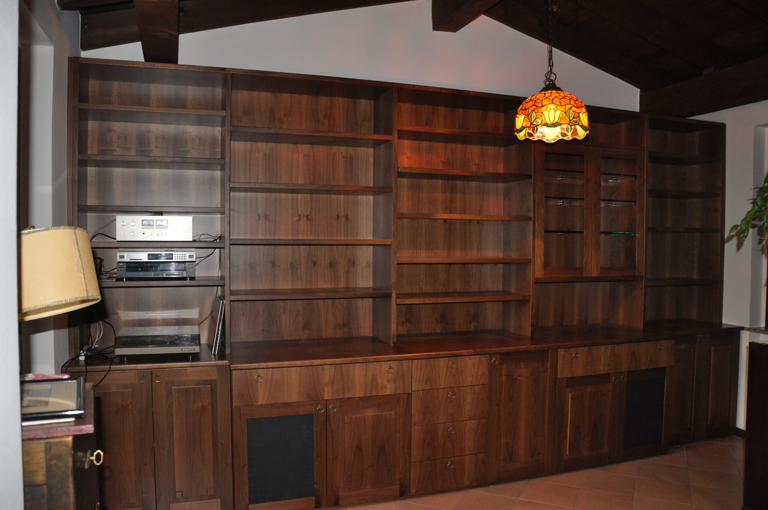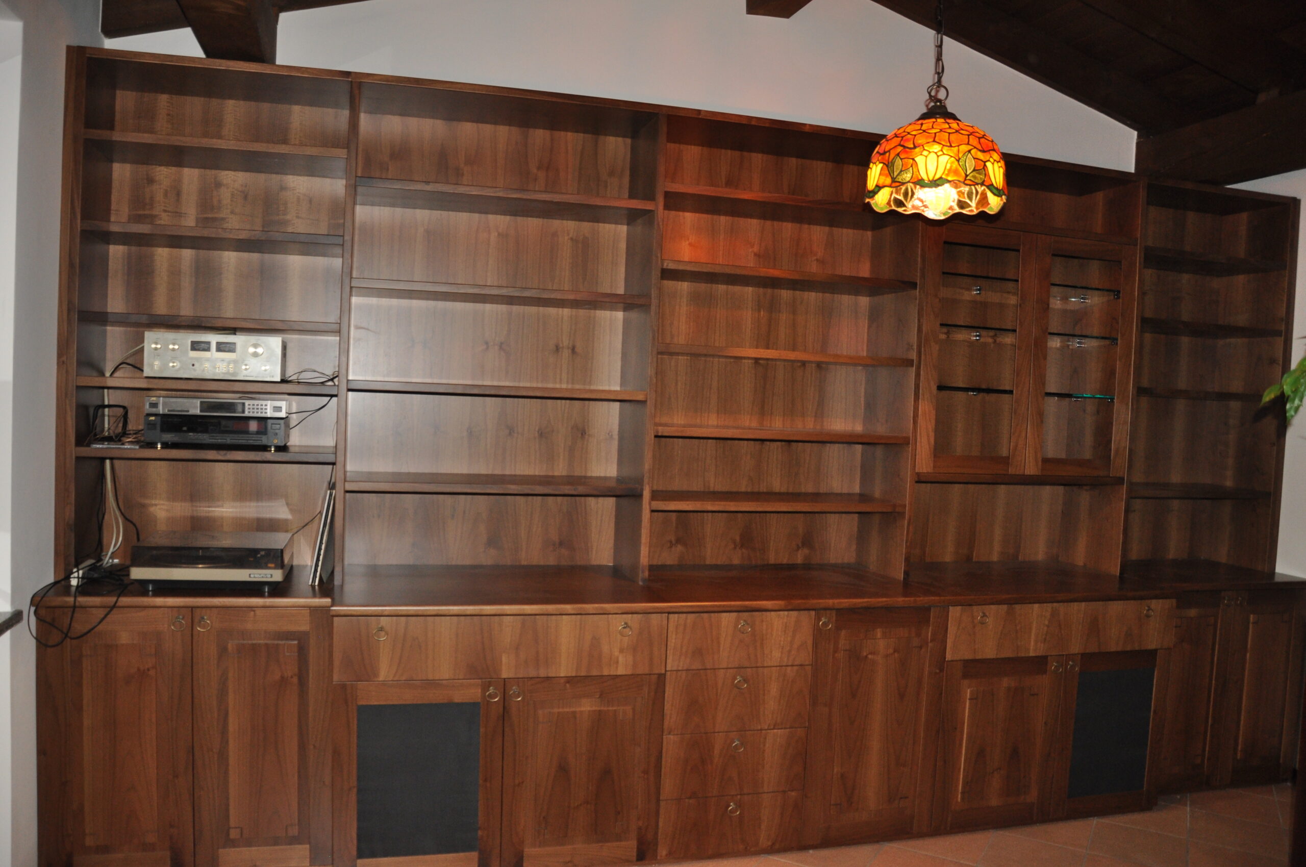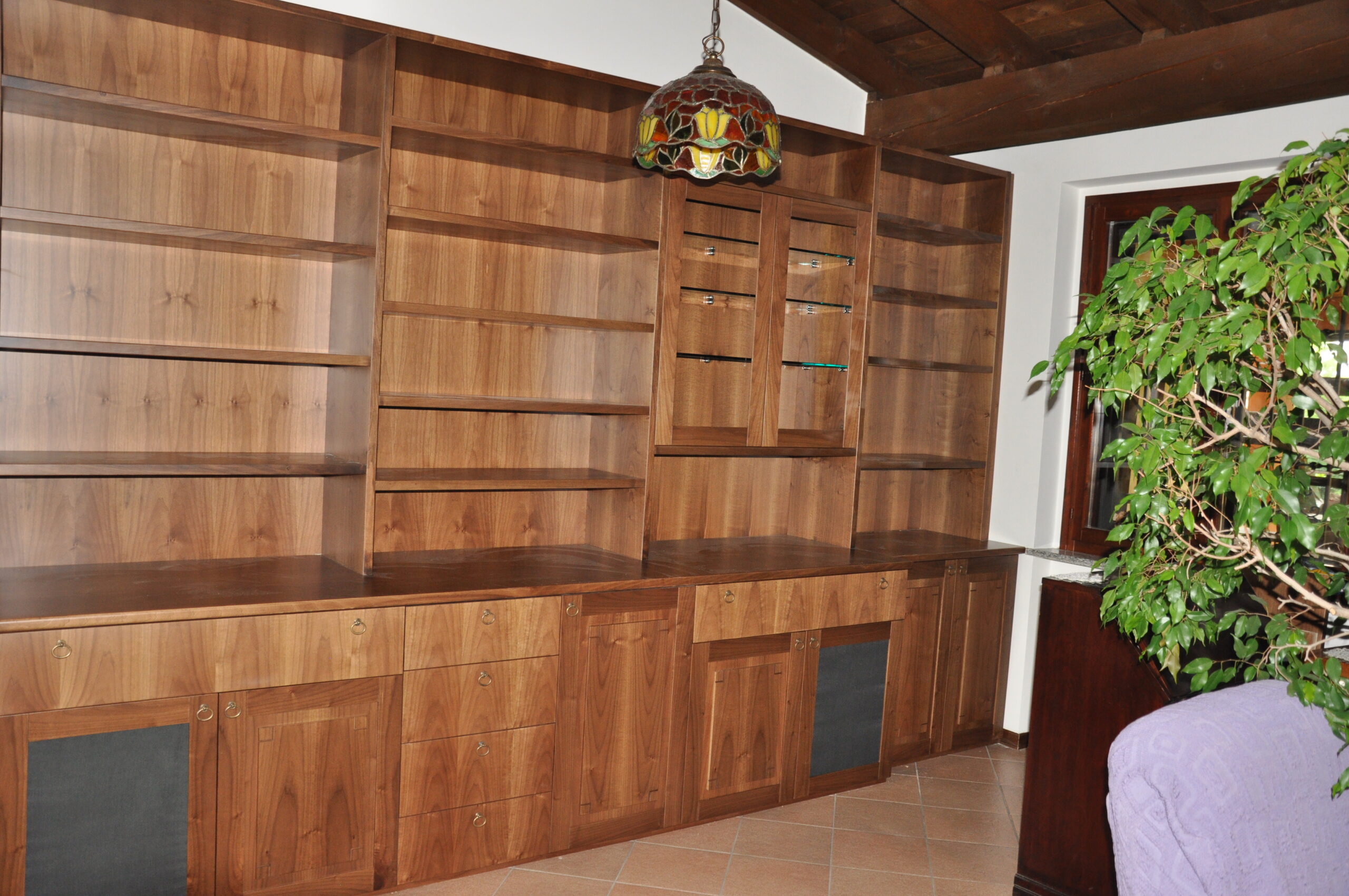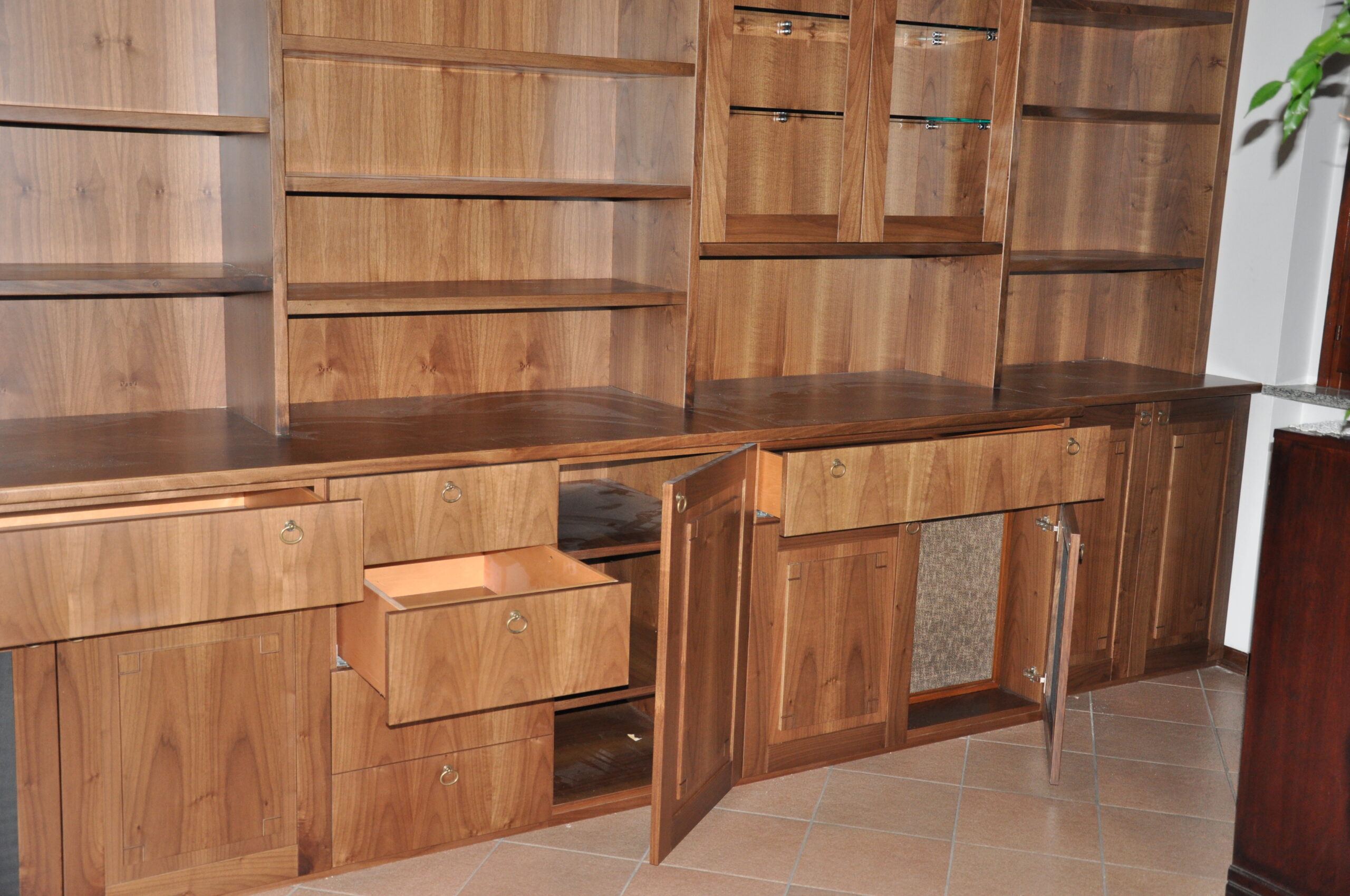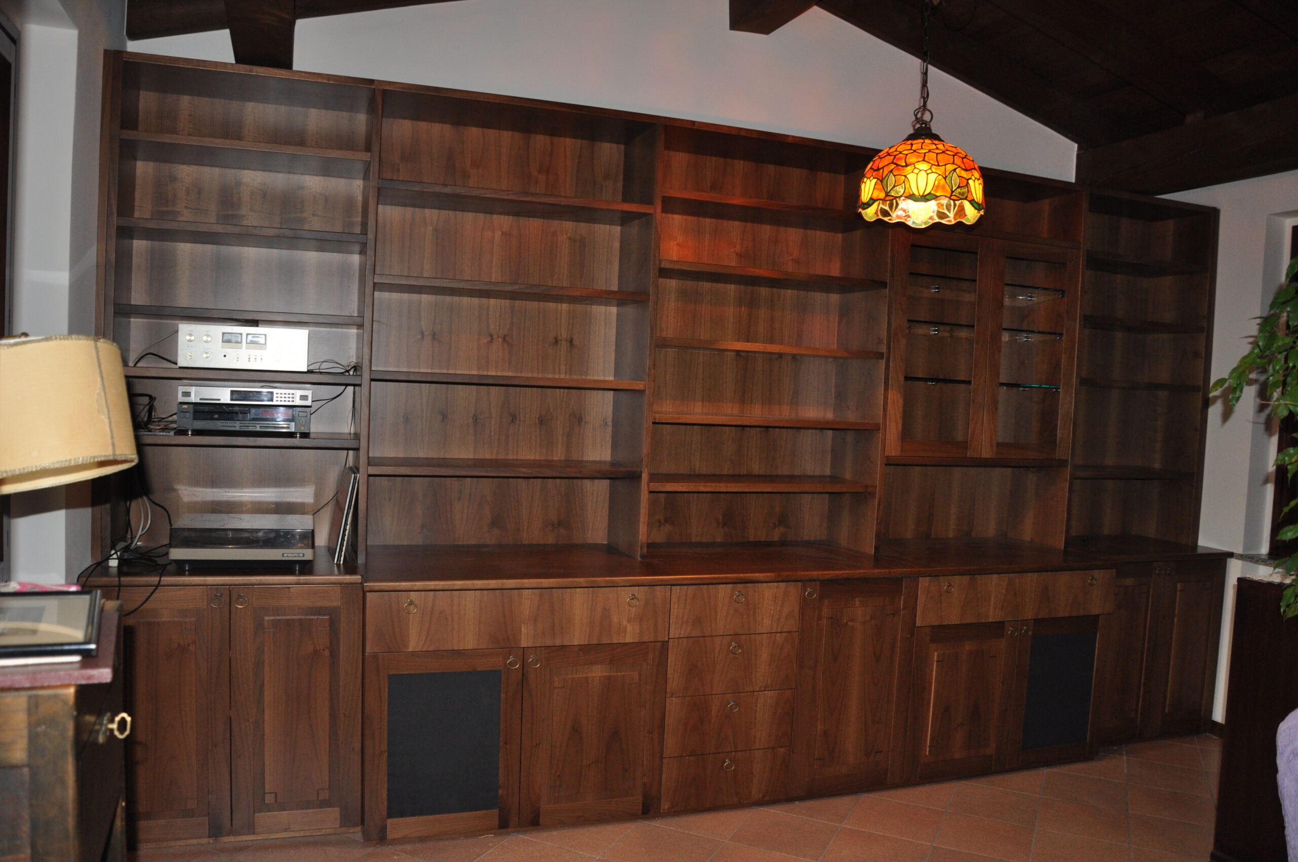 Libreria e mobile soggiorno in noce massello