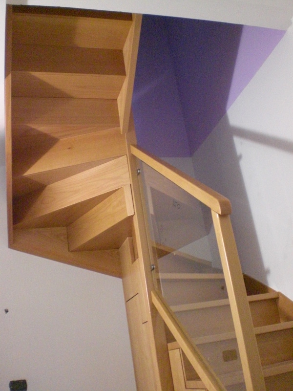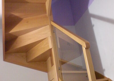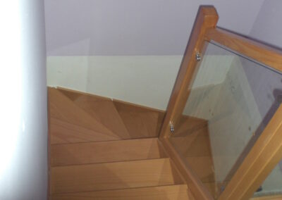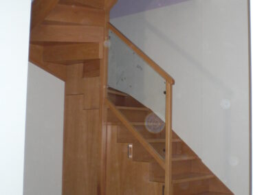 Questa scala in legno rappresenta una soluzione elegante e funzionale per valorizzare al massimo lo spazio disponibile. Realizzata interamente in legno massello con una finitura naturale opaca, si integra perfettamente nell’ambiente domestico, offrendo un effetto caldo e contemporaneo allo stesso tempo. La struttura autoportante è solida e compatta, mentre la ringhiera in legno con pannello di vetro dona leggerezza e sicurezza alla salita.